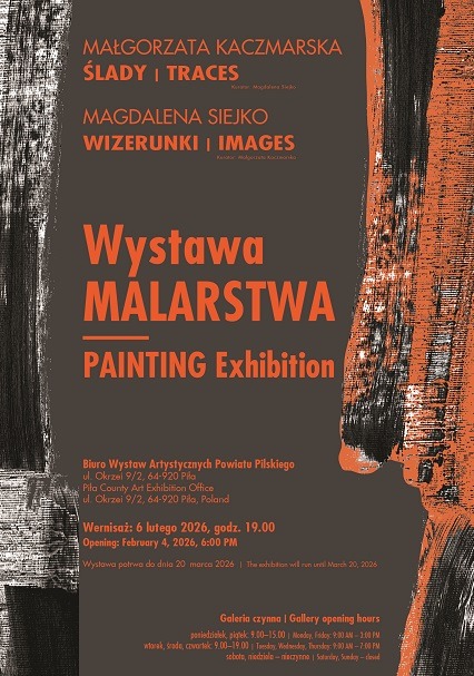 BWA PP: – Zapraszamy na wystawę malarstwa Małgorzaty Kaczmarskiej i Magdaleny Siejko. Prace zaprezentują dwie malarski pochodzące z Krakowa: Małgorzata Kaczmarska w ekspozycji Ślady / Traces oraz Magdalena Siejko z wystawą Wizerunki / Images. Wernisaż w piątek, 6 lutego, o godz. 19.00. – Często przyglądam się ludziom. Nieświadomie zawieszam wzrok i uwagę na osobach nie…