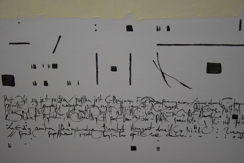 – Ja traktuję pewne refleksje nie tylko jako pewną sensowną wypowiedź – choć są to sensowne wypowiedzi! Ja traktuję je także jako pewien rodzaj graficznego zapisu. Ten rodzaj kaligrafii rządzi się zupełnie innym planem… – chodzi tu też o pewien rodzaj energii i uczuć jakie pojawiają się w danej chwili.