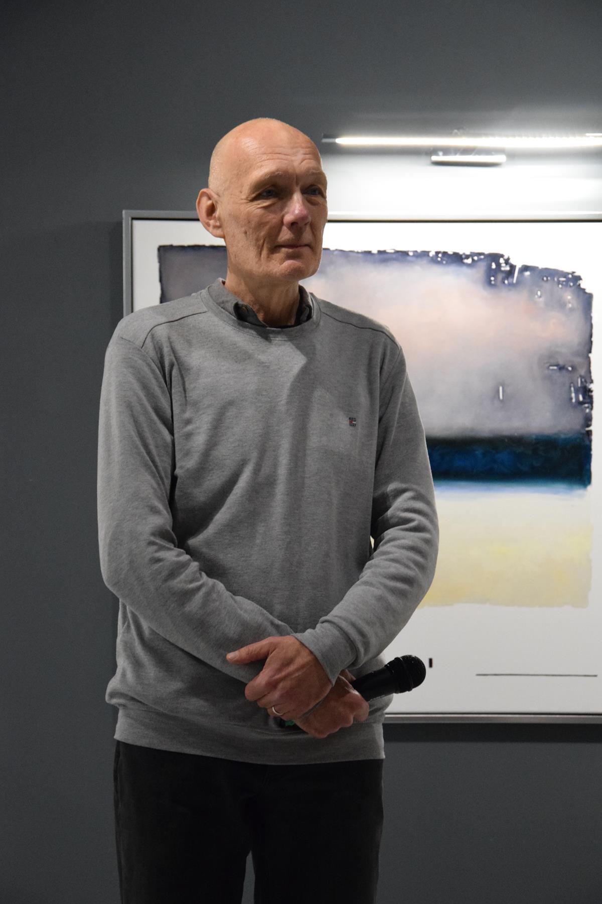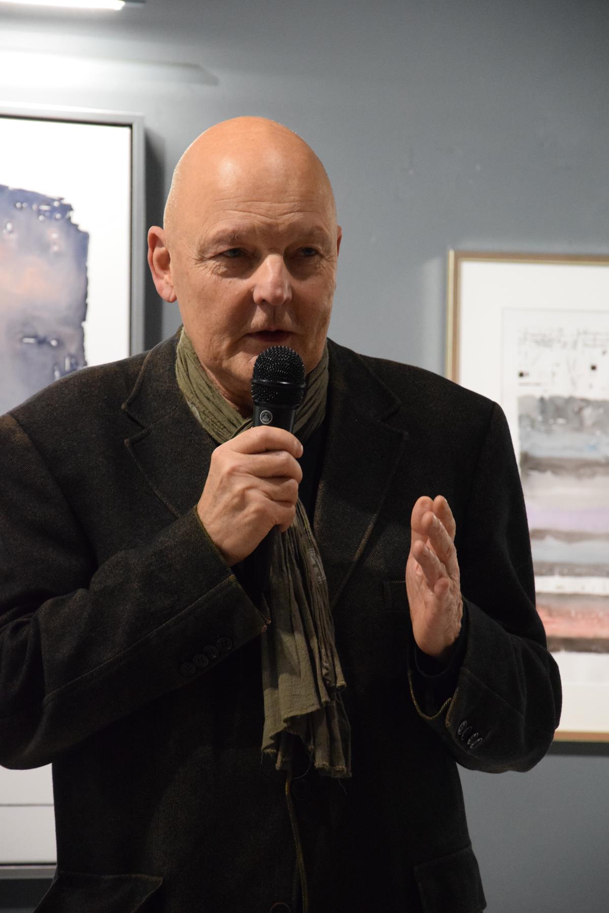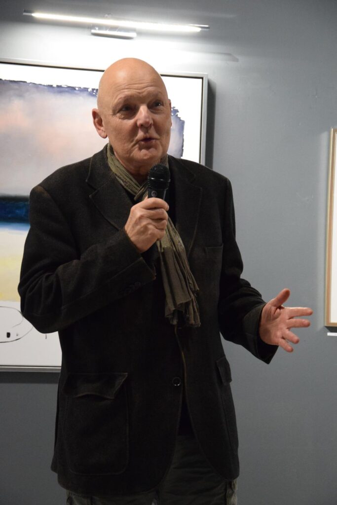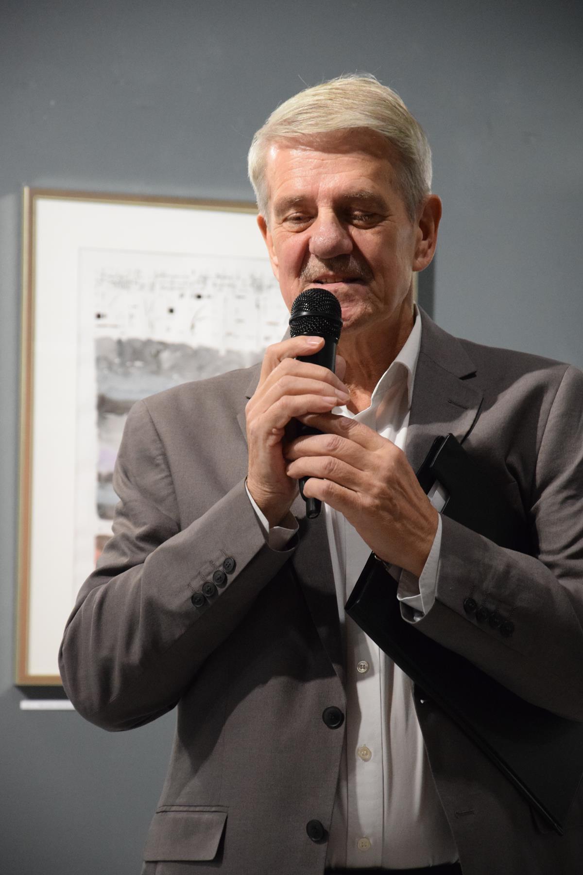 Głos podczas wernisażu zabrał także prof. Jacek Ojrzanowski, który podziękował zebranym za przybycie, dyrektorowi i pracownikom Galerii za promowanie sztuki Mariusza Włodarczyka oraz za piękną aranżację wystawy.