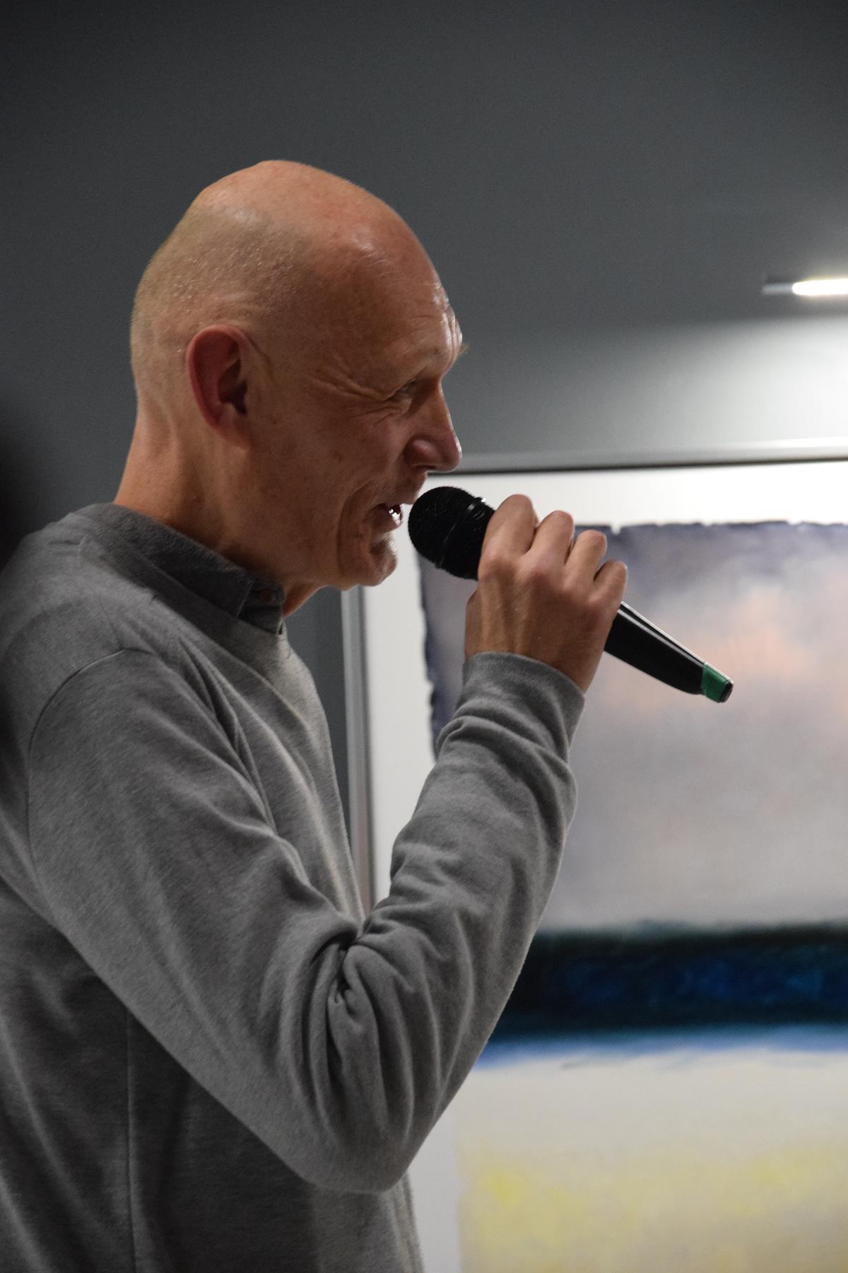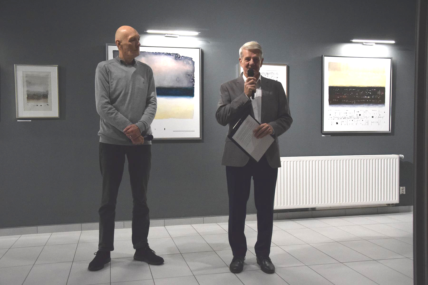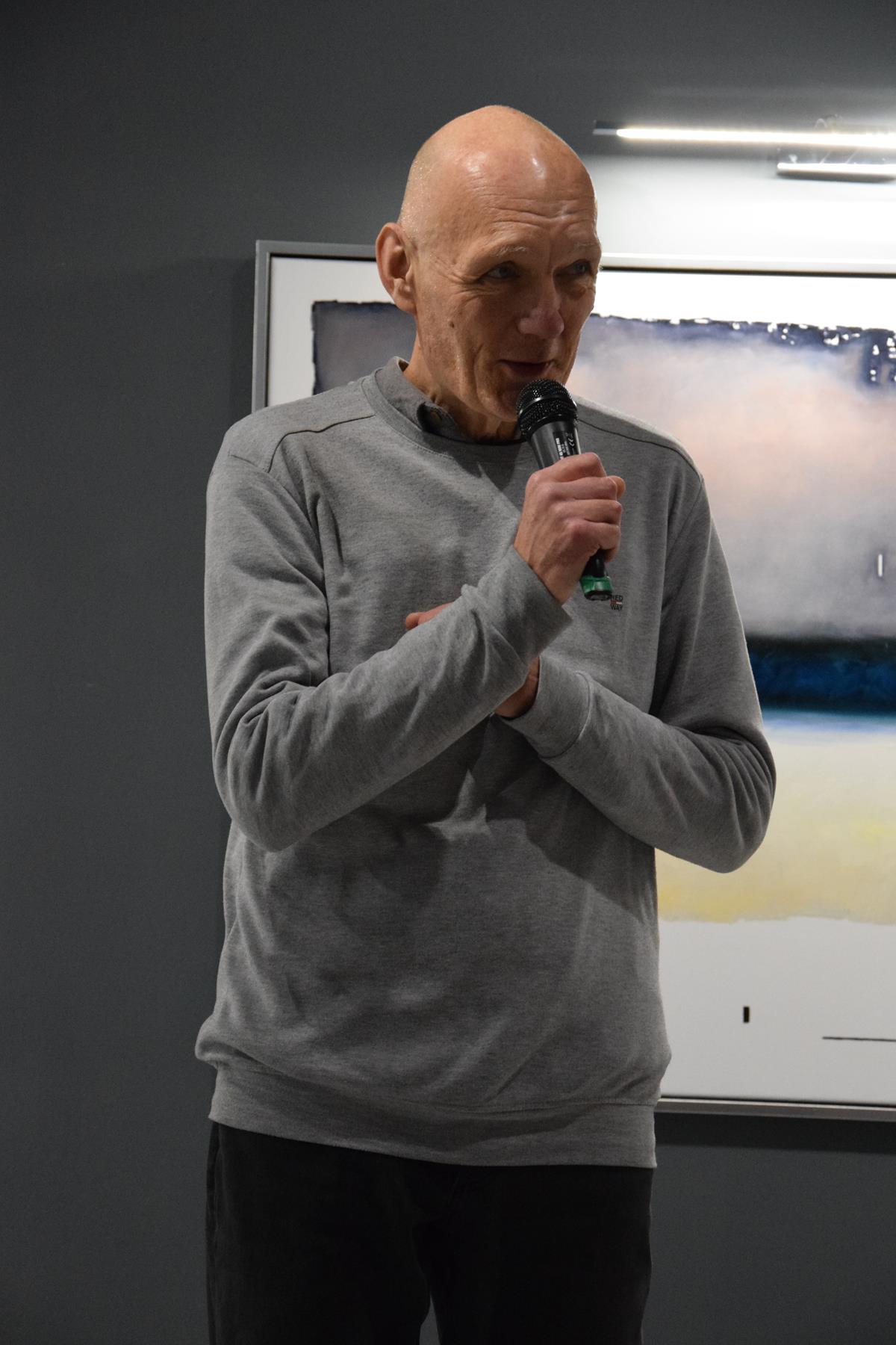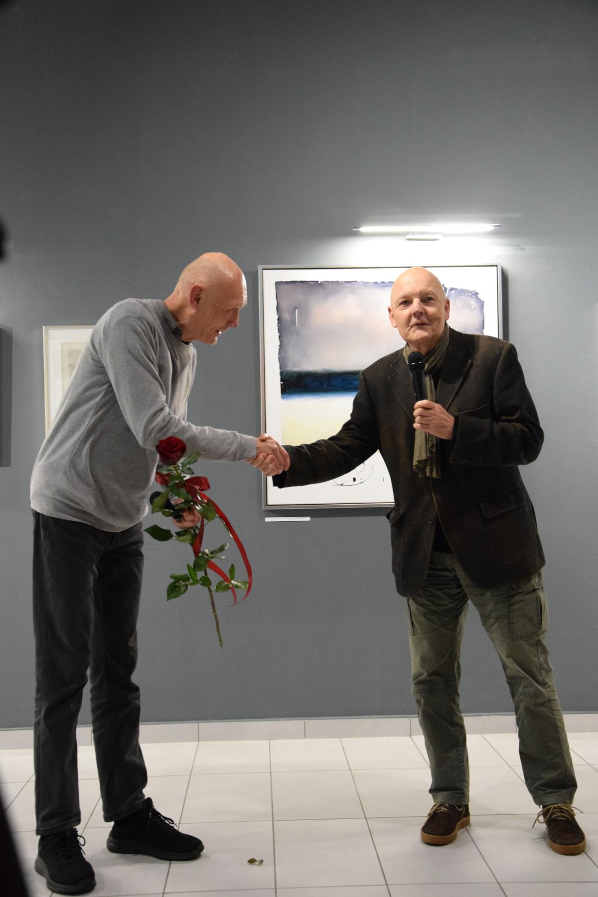 Głos podczas wernisażu zabrał także prof. Jacek Ojrzanowski, który podziękował zebranym za przybycie, dyrektorowi i pracownikom Galerii za promowanie sztuki Mariusza Włodarczyka oraz za piękną aranżację wystawy.