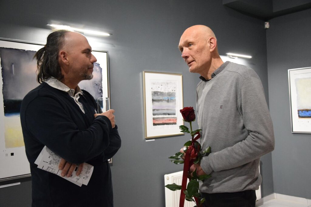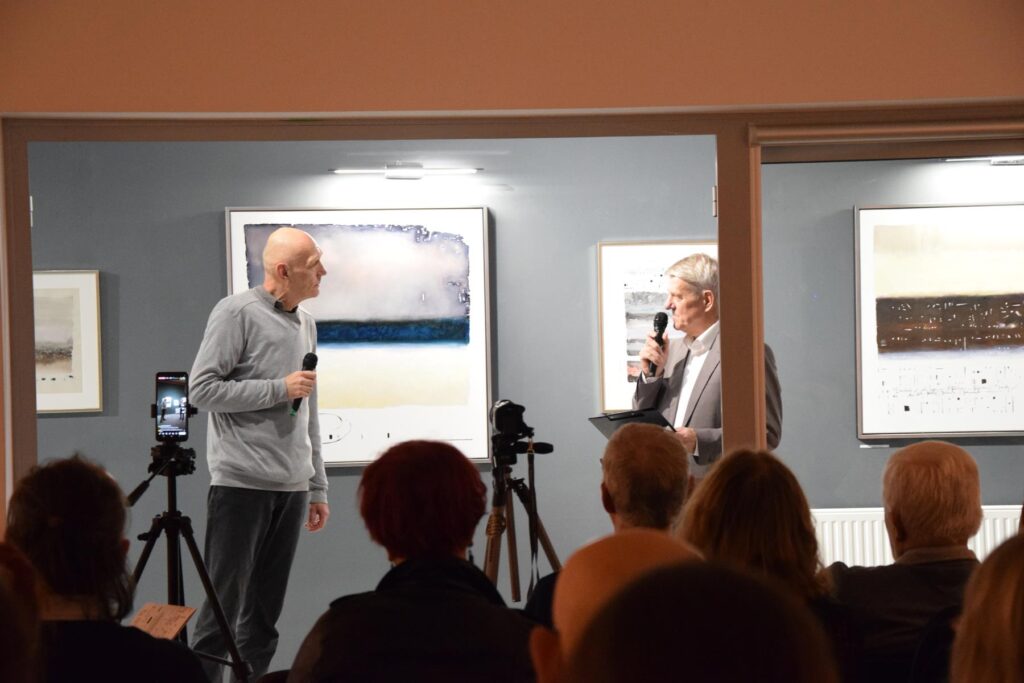 Wystawę otworzył Edmund Wolski, dyrektor BWA PP. Poprowadził on rozmowę z autorem prezentowanych prac, która w znaczący sposób przybliżyła zebranym filozofię, jaką twórca wyznaje i powiązania pomiędzy wymiarami obecnymi w jego sztuce. Ale o tym za moment…