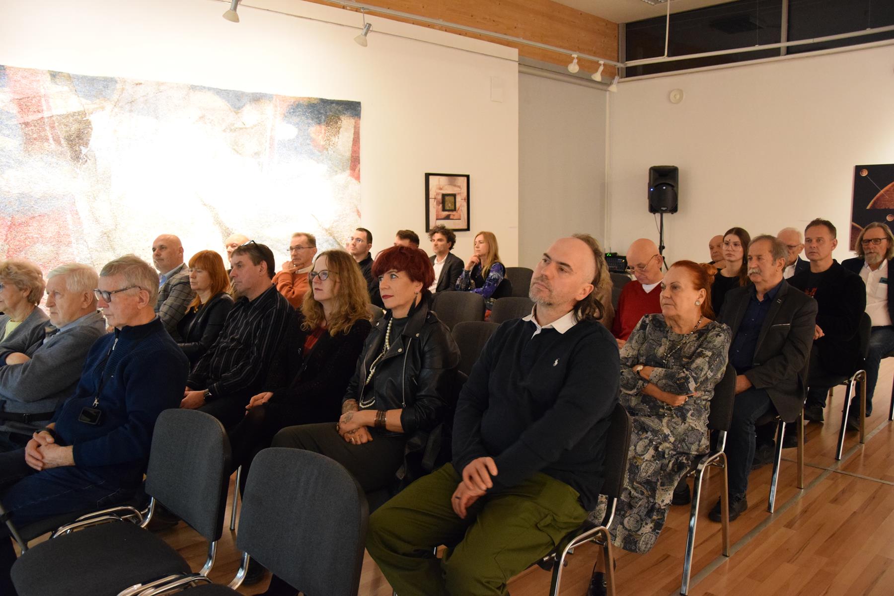 Mowa była także o innych walorach dzieł Włodarczyka. Oglądający zwrócili np. uwagę na piękną, subtelną kolorystykę prac, zastanawiając się, jakie ukryte znaczenie niosą użyte barwy.
