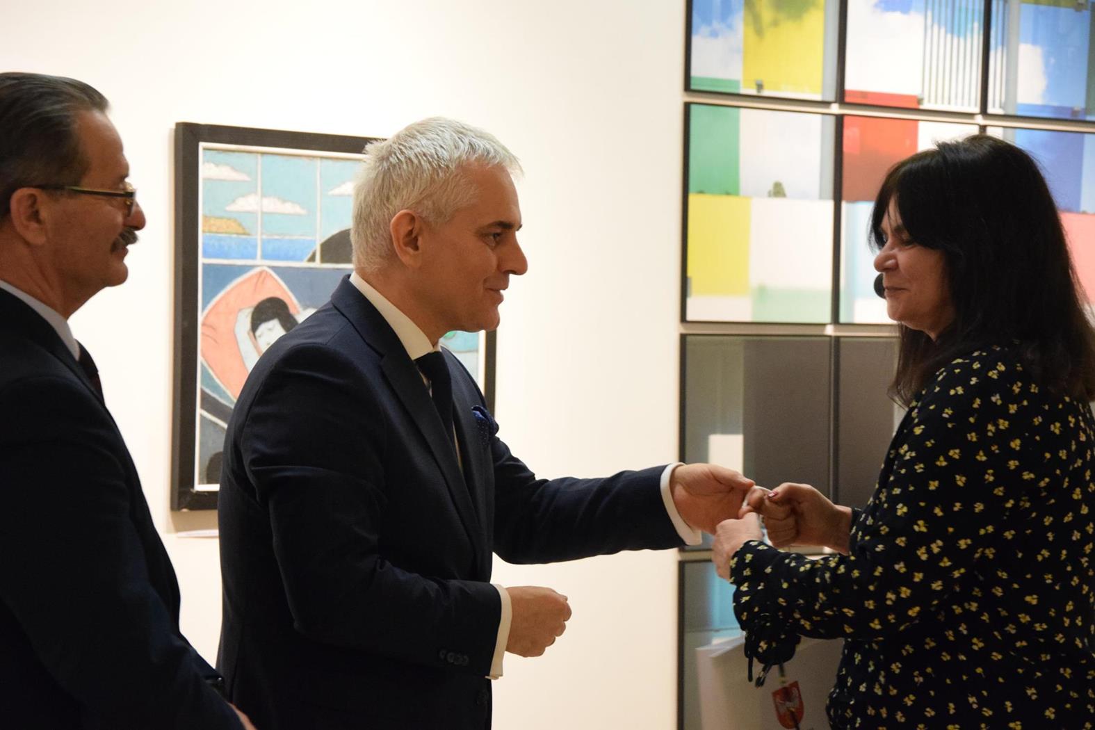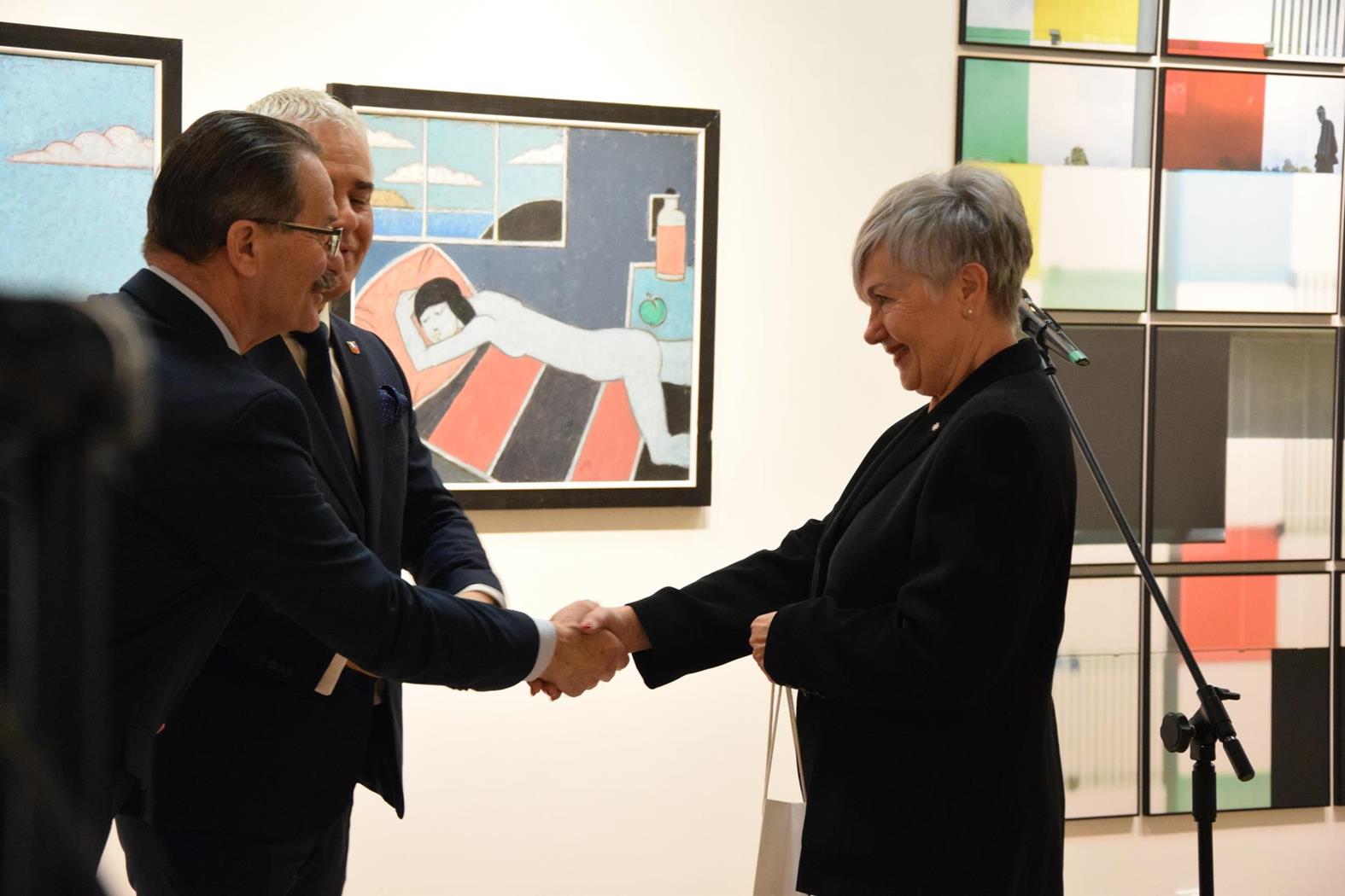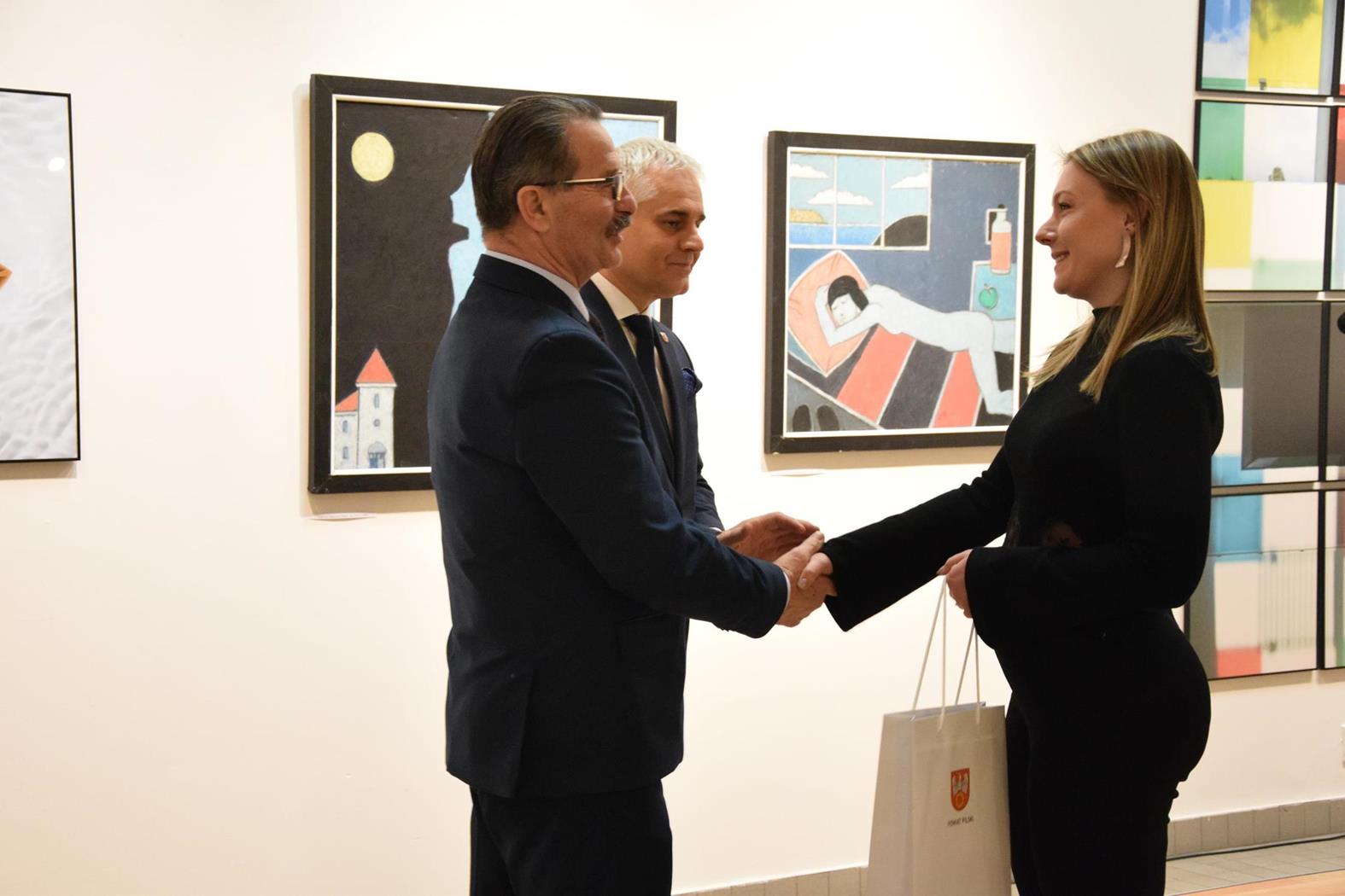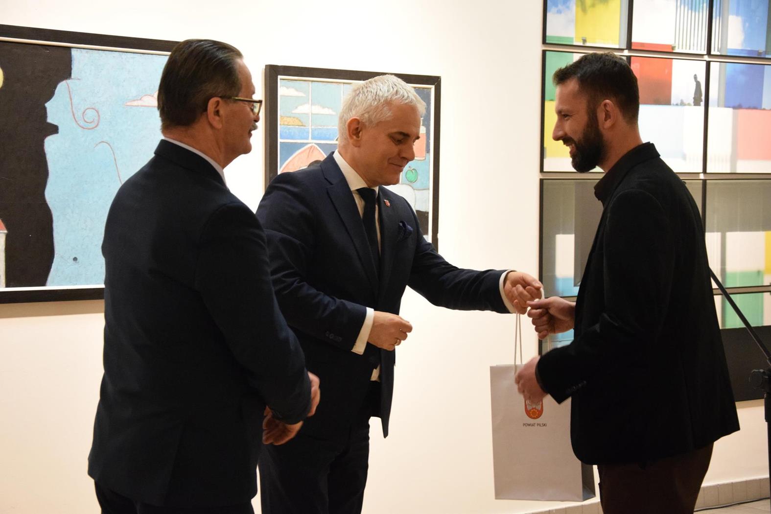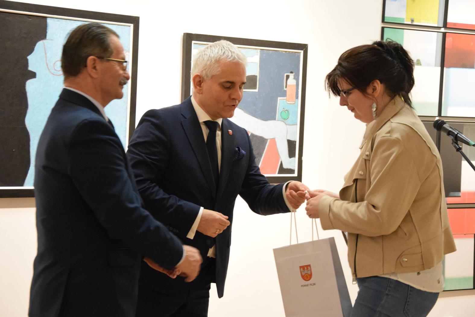 – Salon Pilski pokazuje, jak ogromny potencjał artystyczny drzemie w naszym regionie. To wydarzenie buduje tożsamość kulturową powiatu pilskiego i jest powodem do prawdziwej dumy, zwłaszcza w jubileuszowym roku 50-lecia BWA – mówił Rafał Zdzierela, starosta pilski, który wraz z Kazimierzem Sulimą, etatowym członkiem Zarządu Powiat Pilski, gratulował artystom twórczej pasji. – Przegląd Twórczości Artystów Środowiska Pilskiego, rokrocznie łączący twórców z Północnej Wielkopolski, ponownie pokazuje, jak silne i różnorodne jest nasze lokalne środowisko artystyczne. Do udziału w Salonie zgłaszają się nie tylko artyści mieszkający w regionie, lecz także ci, którzy swoje korzenie wciąż odnajdują w Pile i z sentymentem tu powracają. Na szczególne podkreślenie zasługuje silna obecność młodego pokolenia. Ich świeże spojrzenie i odwaga w eksperymentowaniu są dowodem na to, że kultura w Północnej Wielkopolsce wciąż dynamicznie się rozwija, a nowoczesne tendencje twórcze znajdują tu podatny grunt. Dziękuję wszystkim uczestnikom Salonu Pilskiego Art 2025 za obecność i twórczy wkład. Artystom życzę wielu miesięcy pełnych natchnienia i satysfakcji z tworzenia, a odwiedzającym niezapomnianych doznań i spotkania z prawdziwą magią sztuki – życzył starosta.
